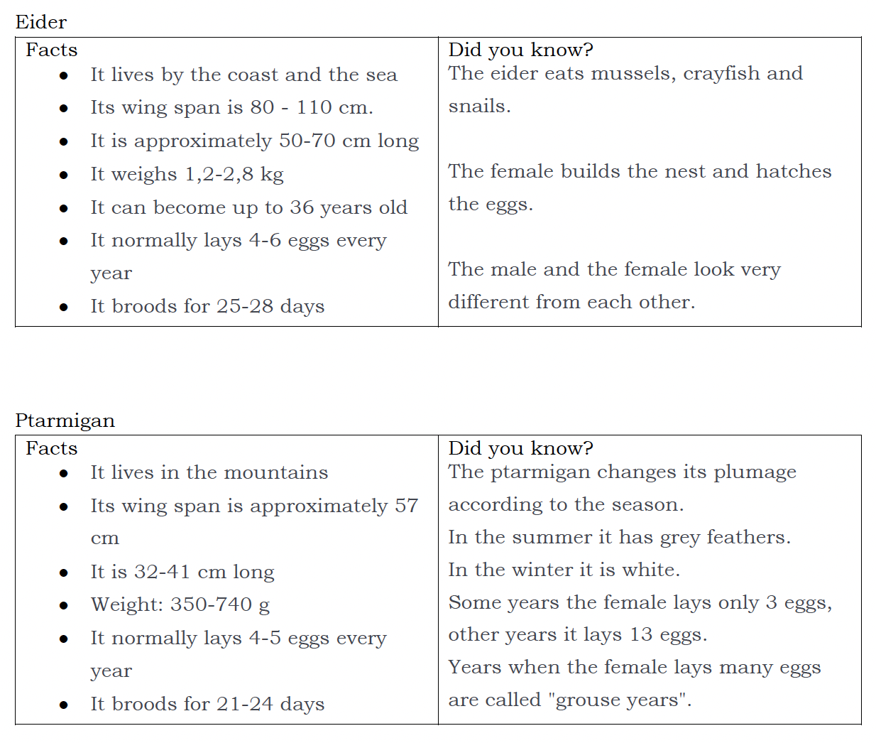 On pages 22-23 there is a picture of two eiders (a male and a female) and a picture of a ptarmigan.