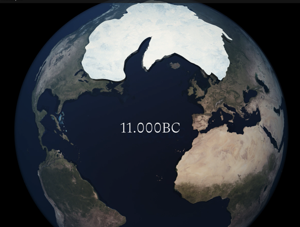 What countries were covered by ice 11,000 years ago?