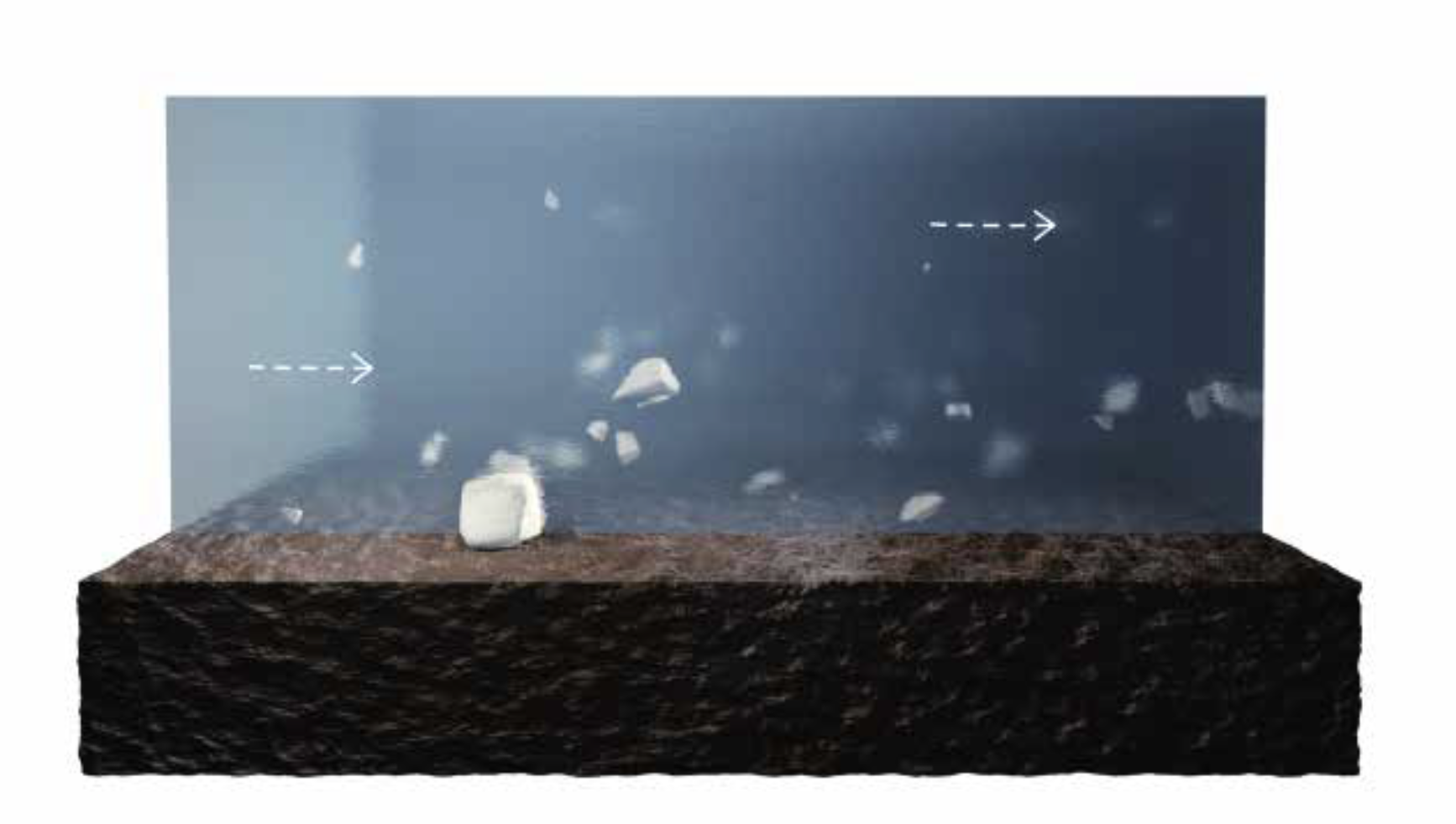Indlandsisen er altid i bevægelse. Den har så enorme kræfter, at den kan knuse selv de største klippestykker til fint grus på sin vej mod kysten.