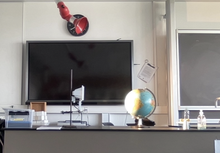 The students see part of a world map.