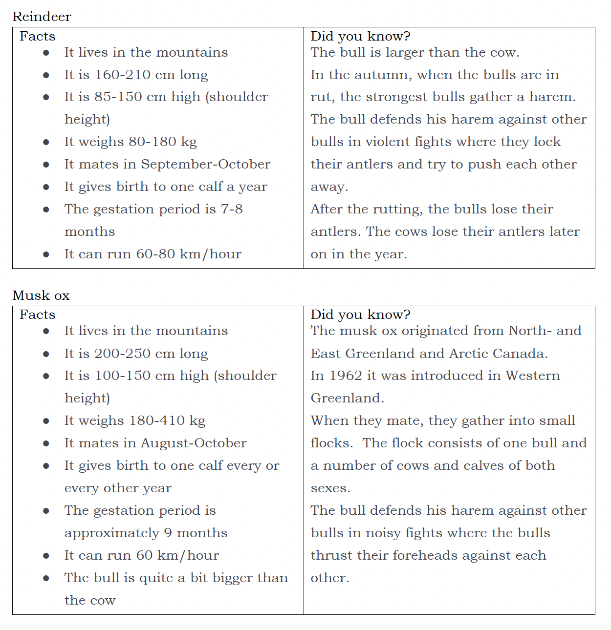 Which is the biggest? A reindeer or a musk ox?