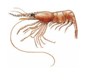 De små krebsdyr kalder man krill eller lyskrebs. Krill lever af planteplankton, som de skraber af undersiden af isen med de stive børster, de har på spidsen af benene.