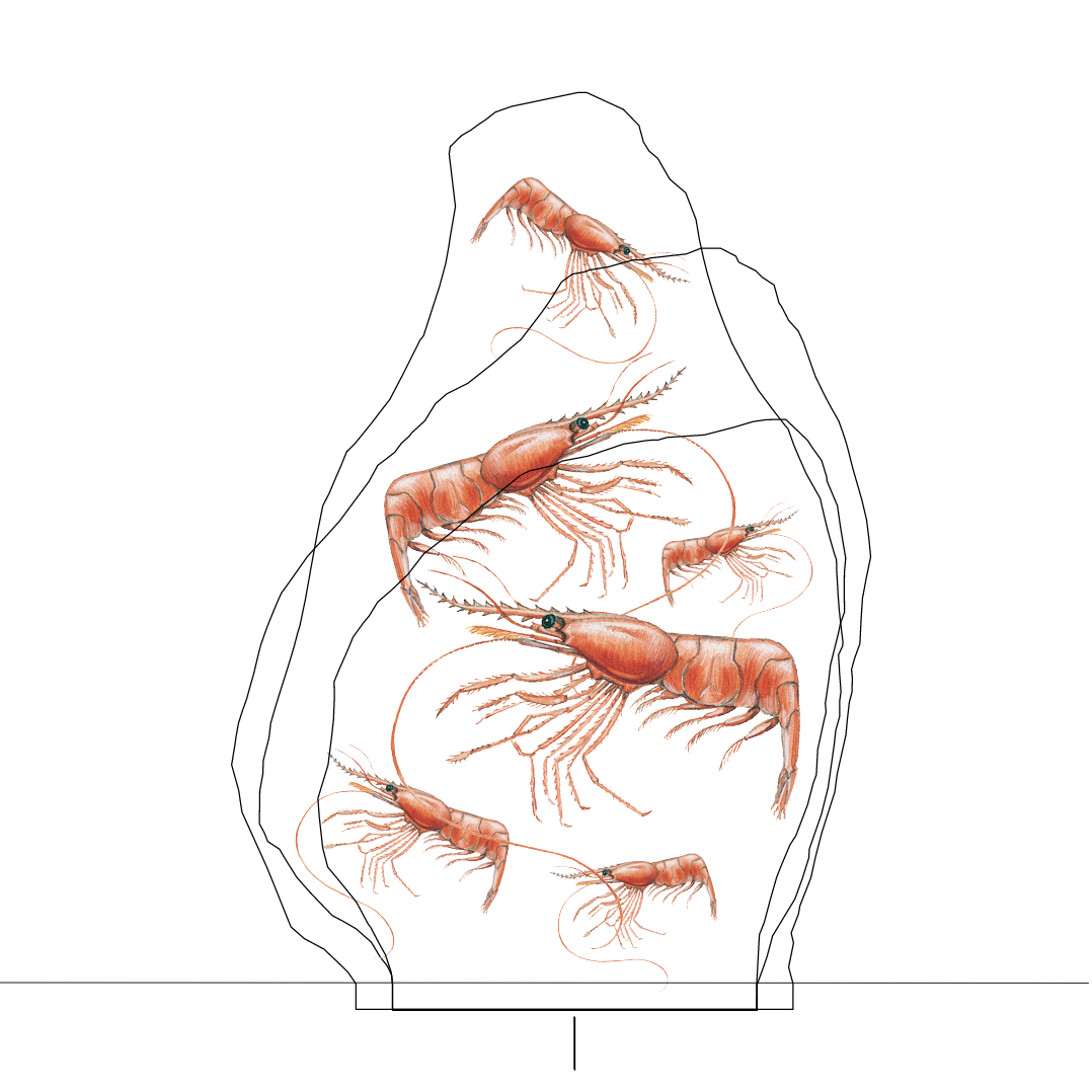 Krill lever af det planteplankton der findes under havisen, men den sørger også for føde til dyrene på bunden, fordi dens afføring synker ned på bunden.
