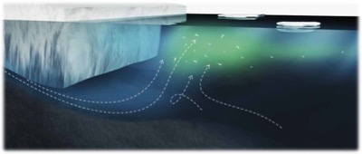 Smeltevand løber ud under gletsjeren og løfter næringsrigt bundvand op i lyset.