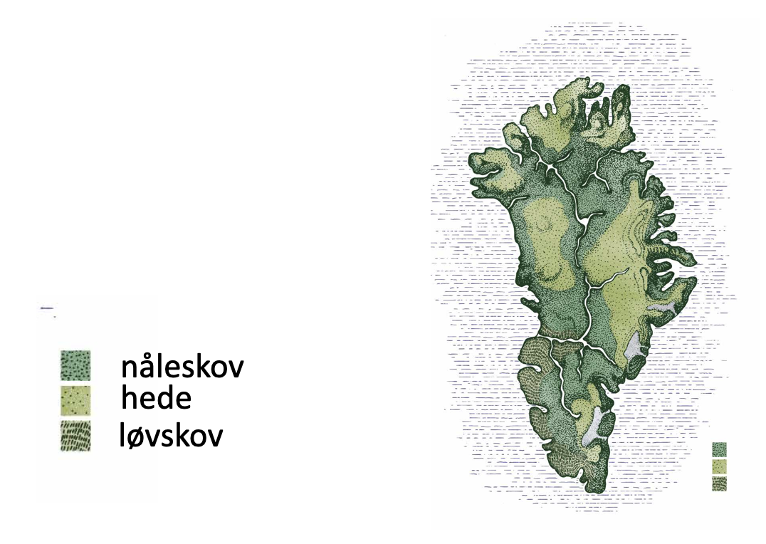 For 2 mio. år siden voksede der træer. På kortet kan man se, hvor der voksede nåletræer og løvtræer, og hvor der var heder.